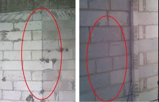 混水墻面組砌方法混亂,出現(xiàn)通縫和“二層皮”,組砌形式不當,形成豎縫寬窄不均