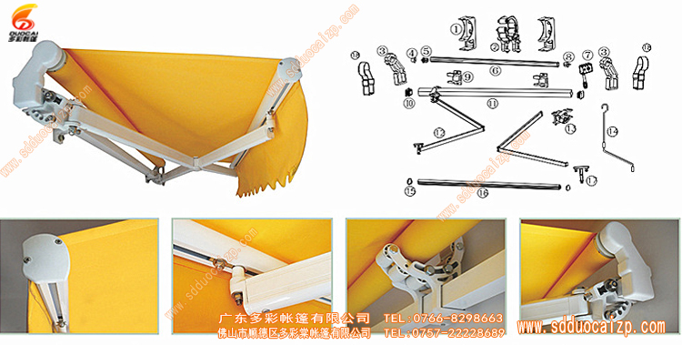 ■ 堅固的垂臂內置彈簧時刻繃緊帆布;
